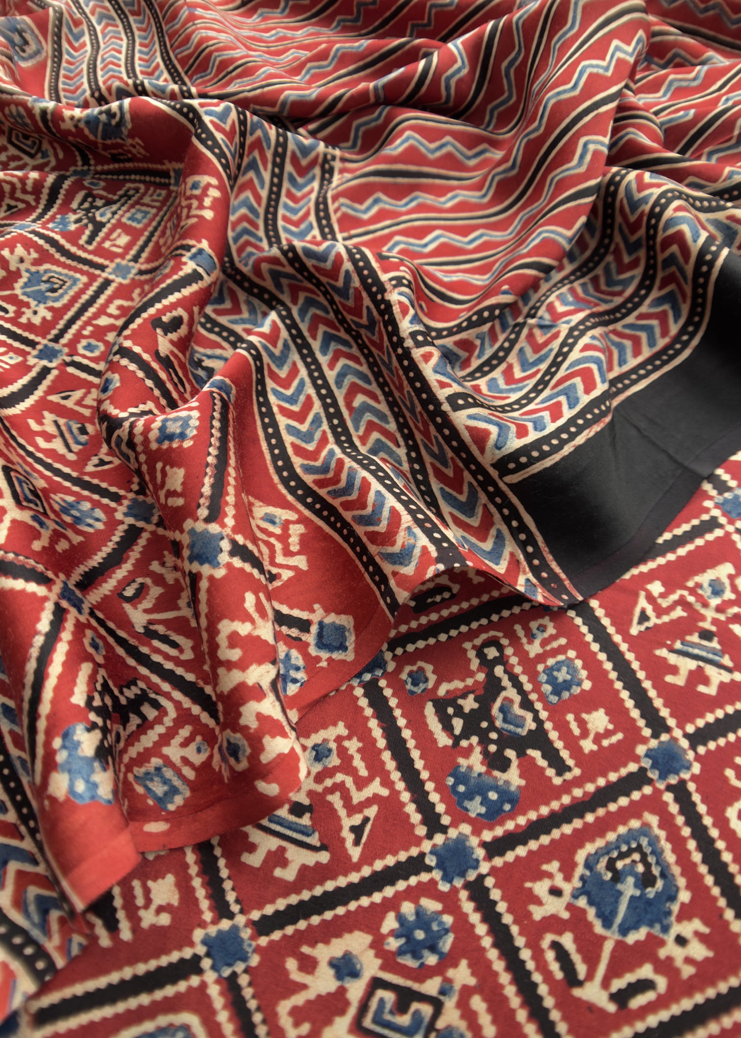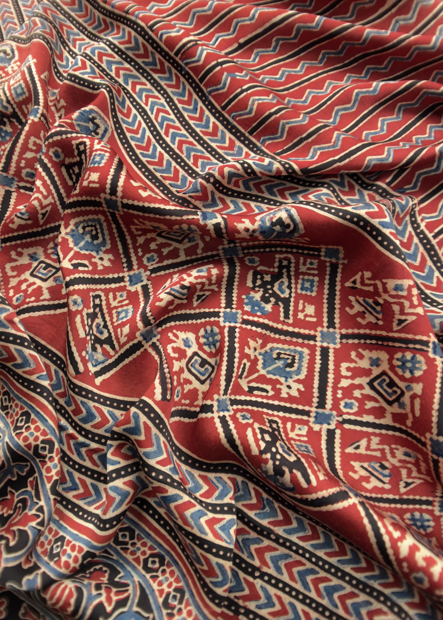 Experience the perfect blend of traditional Ajrakh handblock printing on premium modal fabric.