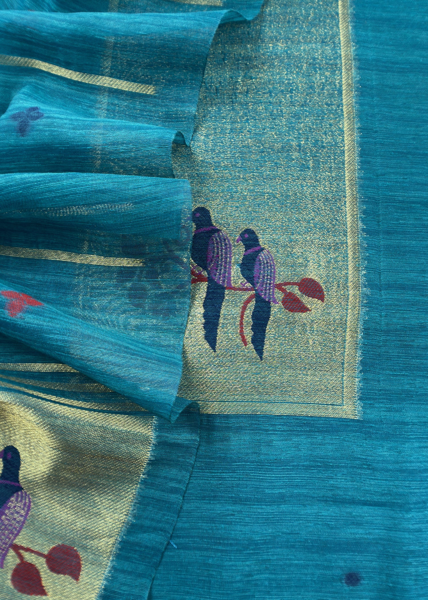 Turquoise Jamdani Woven Unstitched Suit With Paithani Work