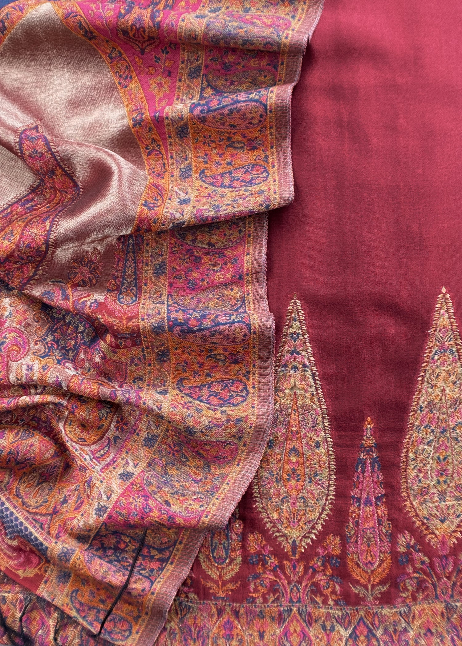 This premium Kani silk suit includes a beautifully woven Kani silk kurta, a matching Kani silk dupatta, and a soft cotton-silk bottom. It’s a perfect choice for weddings, festivals, or your special trousseau.