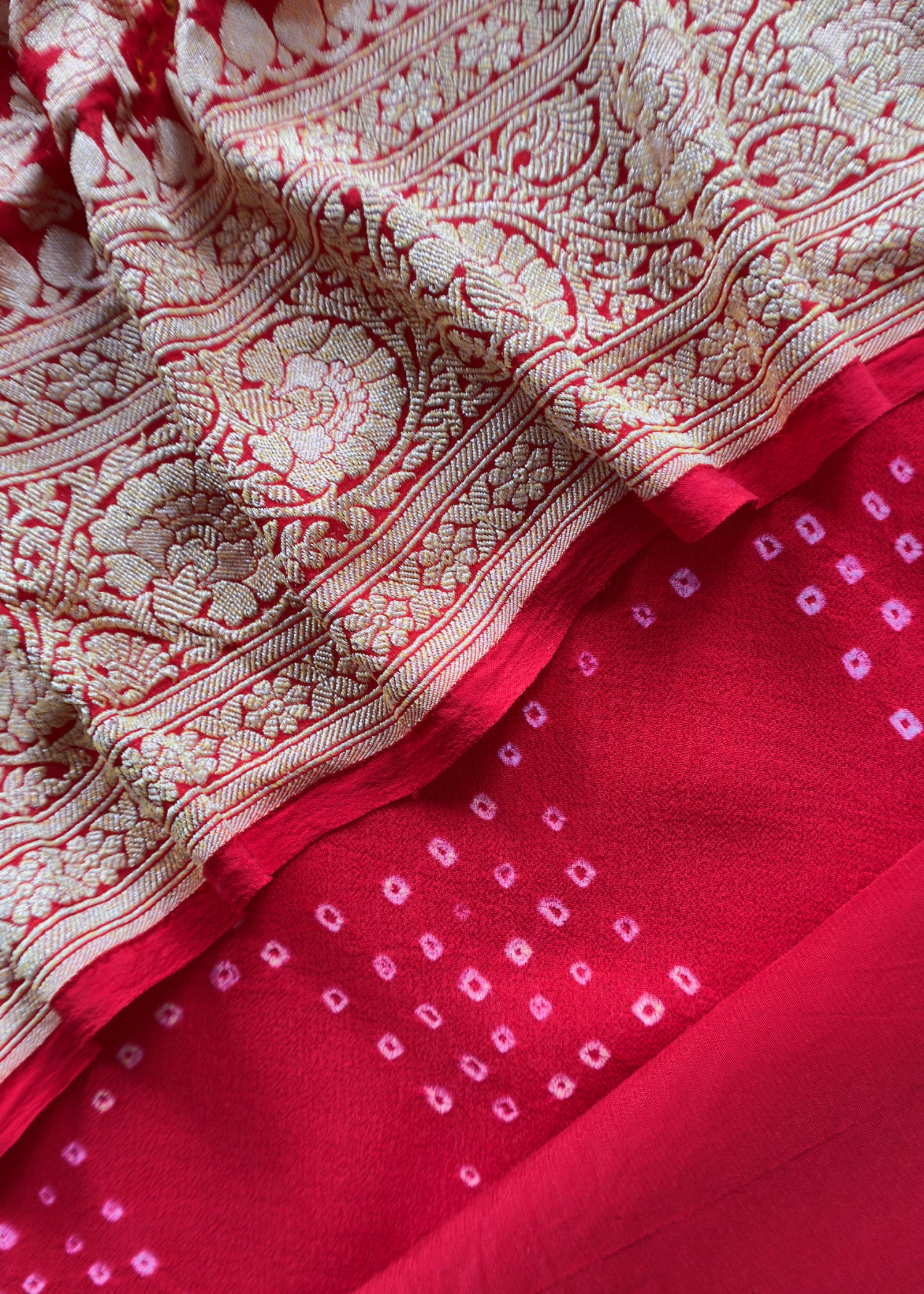 Red Pure Khaddi Georgette Suit Fabric With Gharchola Bandhani Dupatta
