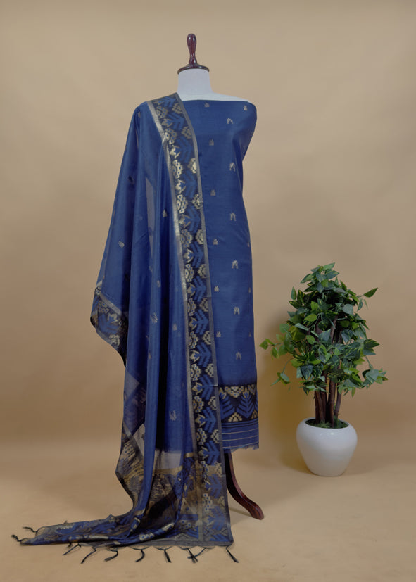 Saanjh Royal Blue Chanderi Silk Suit Fabric With Jamdani Weaving