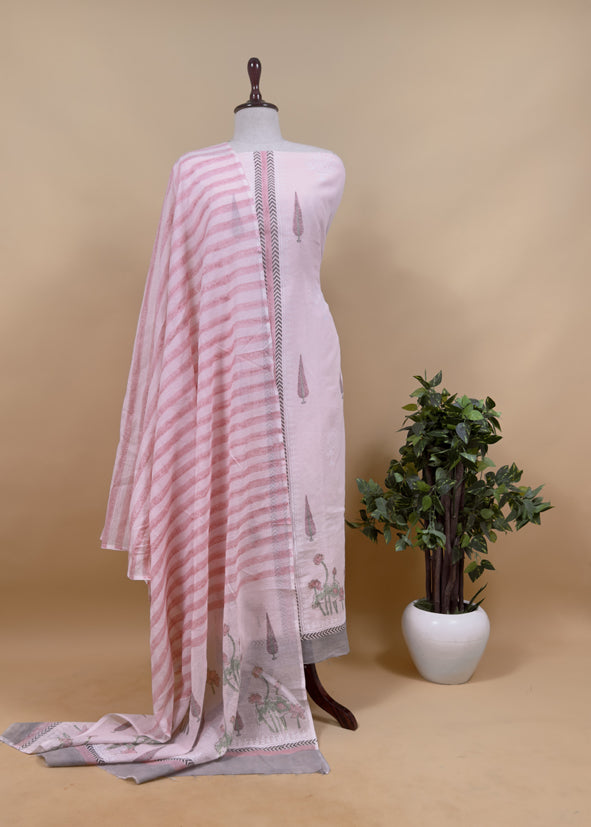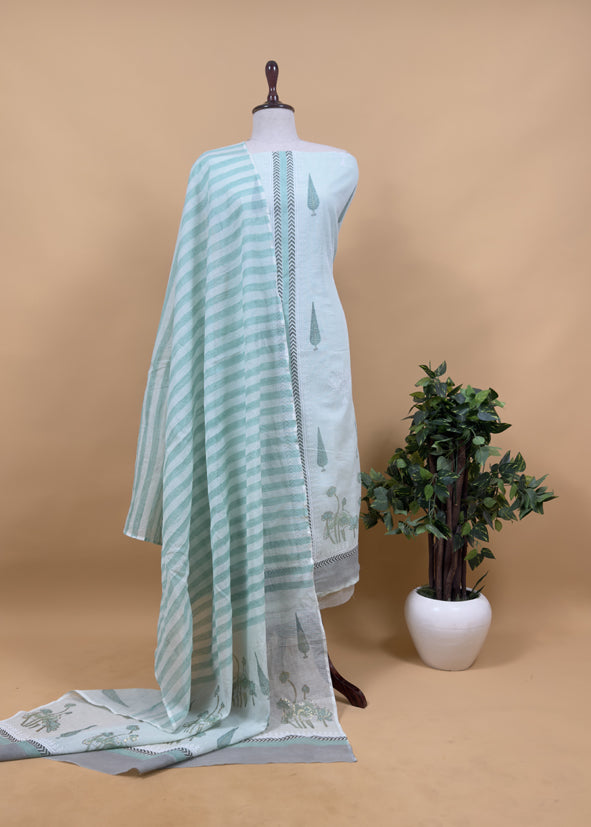 Shop this summer-exclusive Kota kurta and dupatta set, beautifully adorned with hand-block and gold foil block printing.