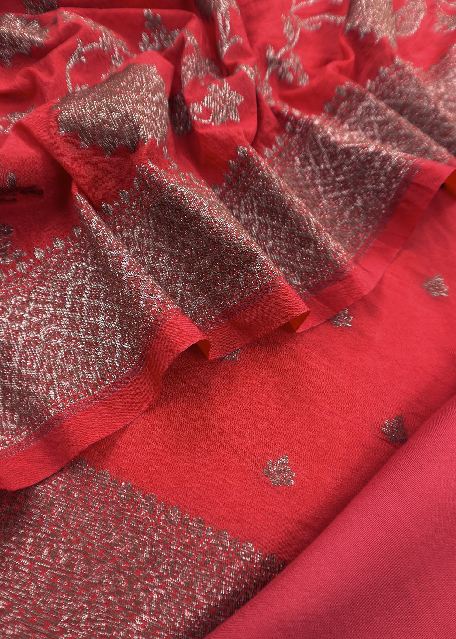 Sindoor Red Georgette Silk Suit Fabric With Shikagarh Zari weaving