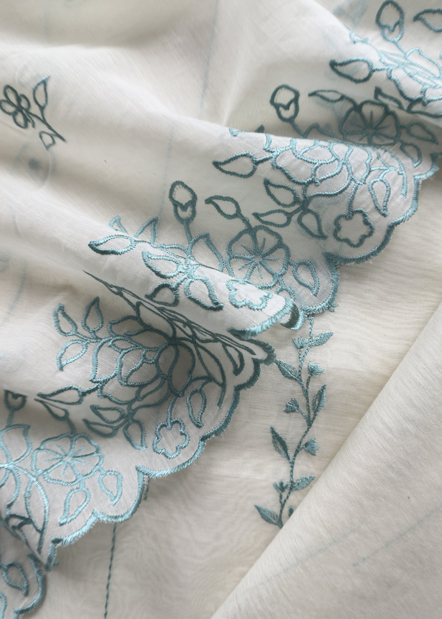 Turquoise And White Mul Chanderi Suit With Embroidery