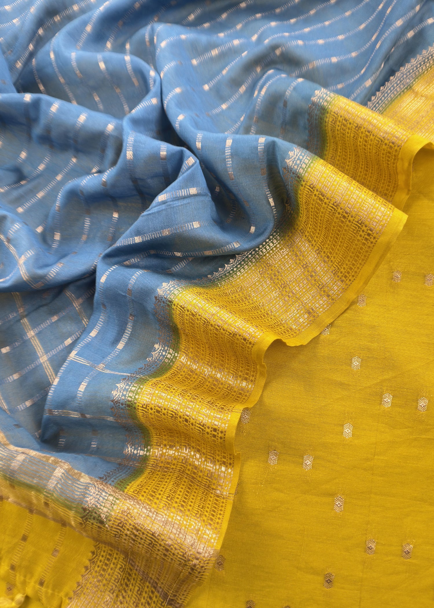 Yellow Banarasi Chanderi Suit With Contrast Dupatta