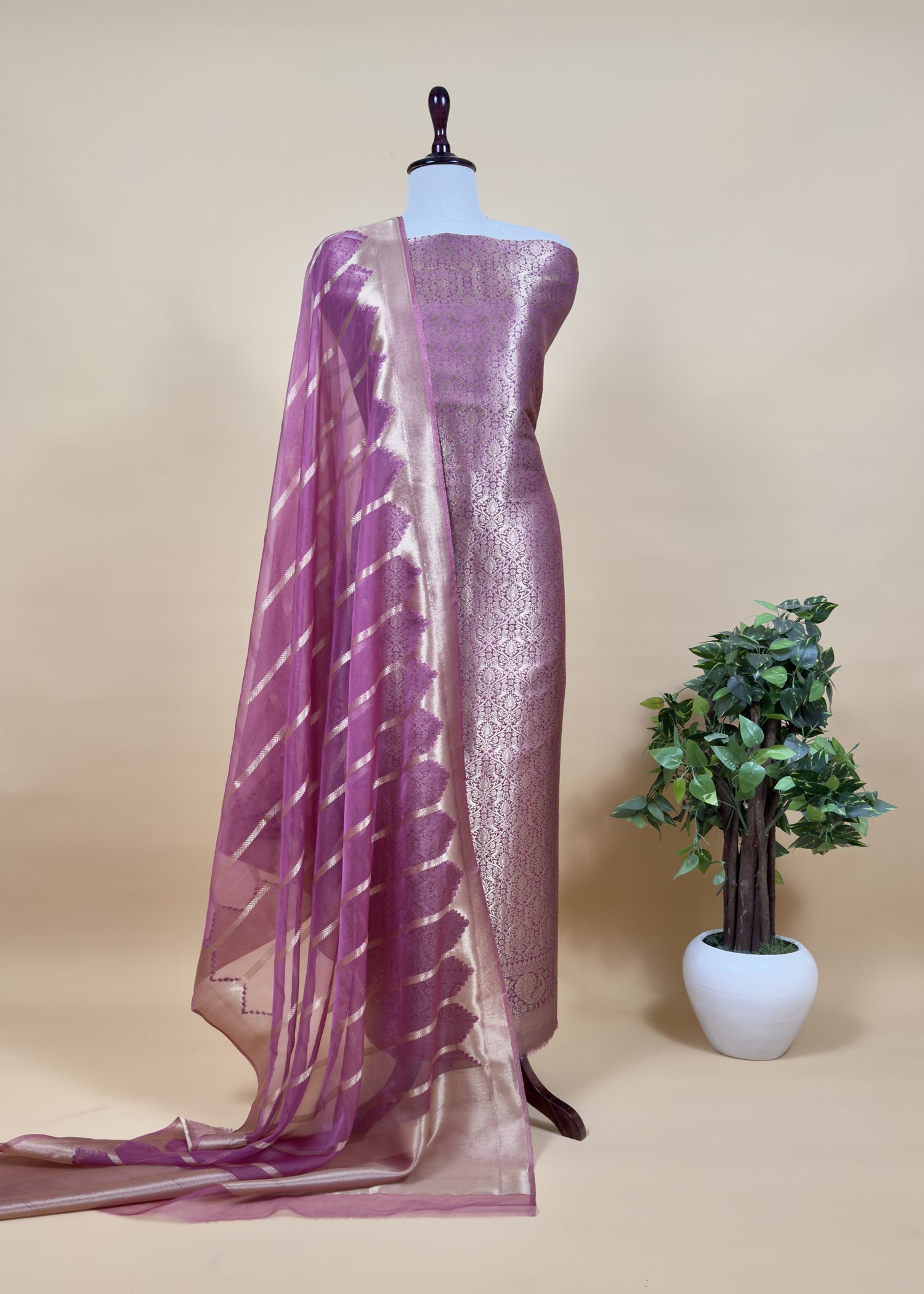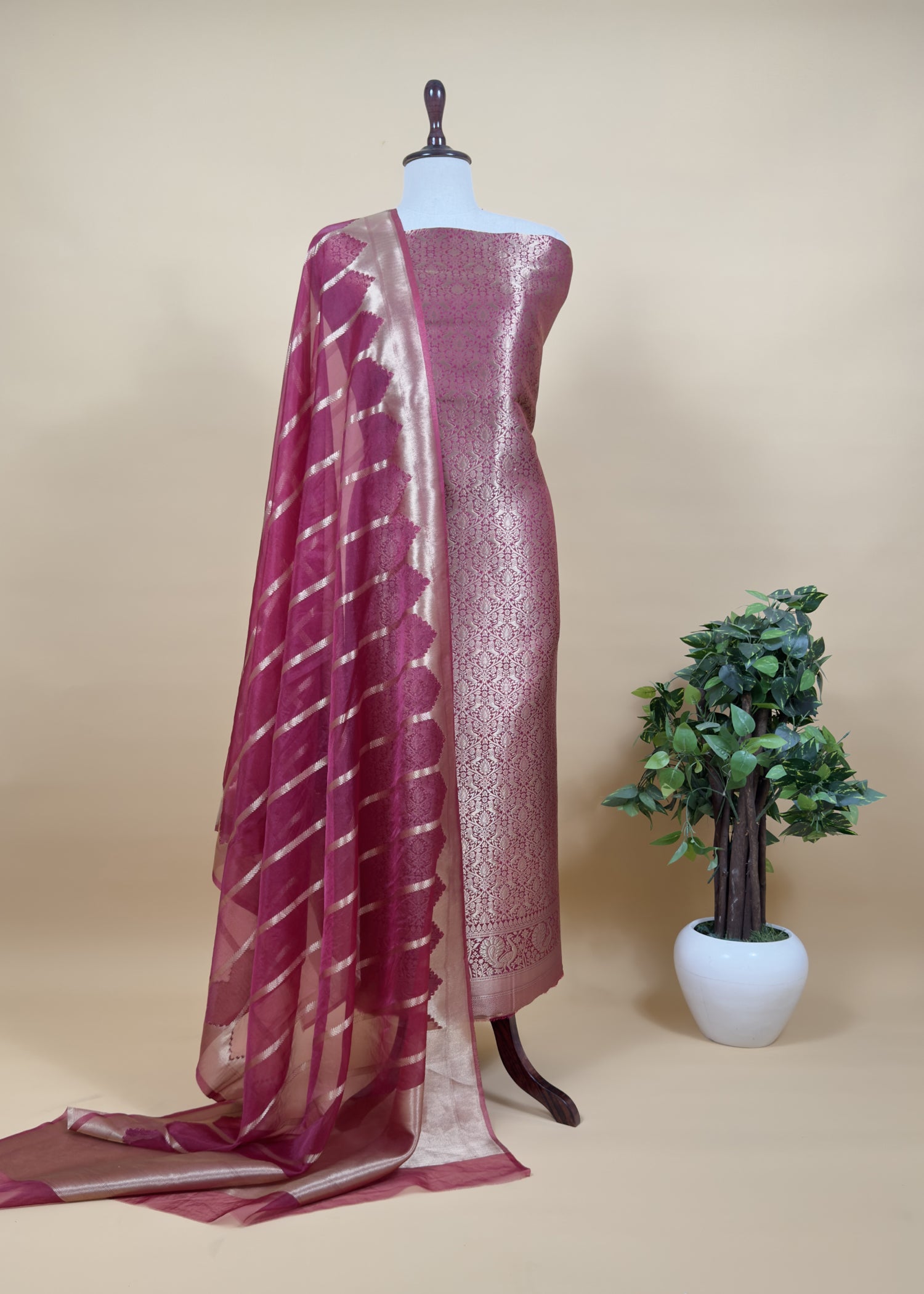 Yellow Banarasi Silk Brocade Suit With Organza Dupatta