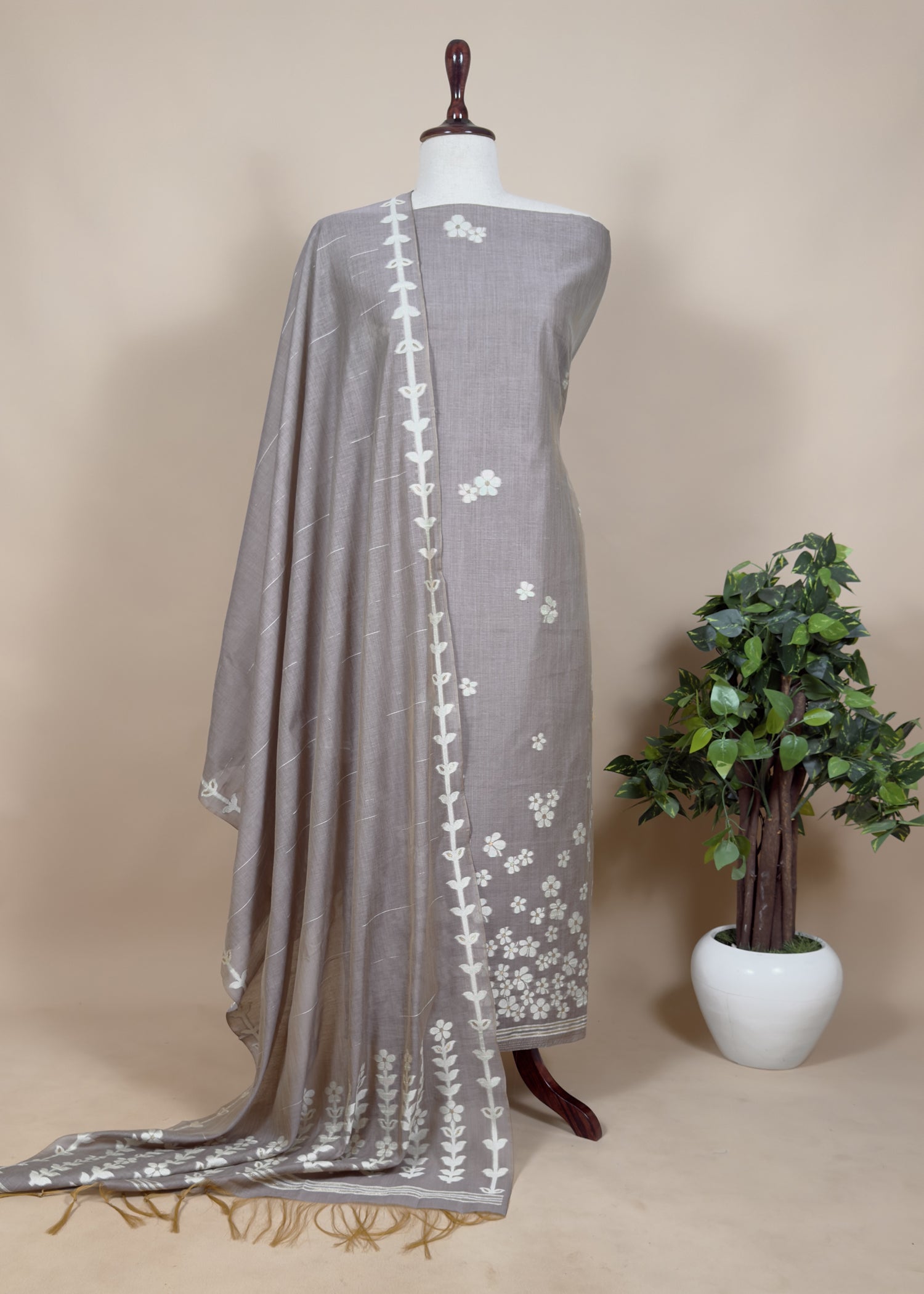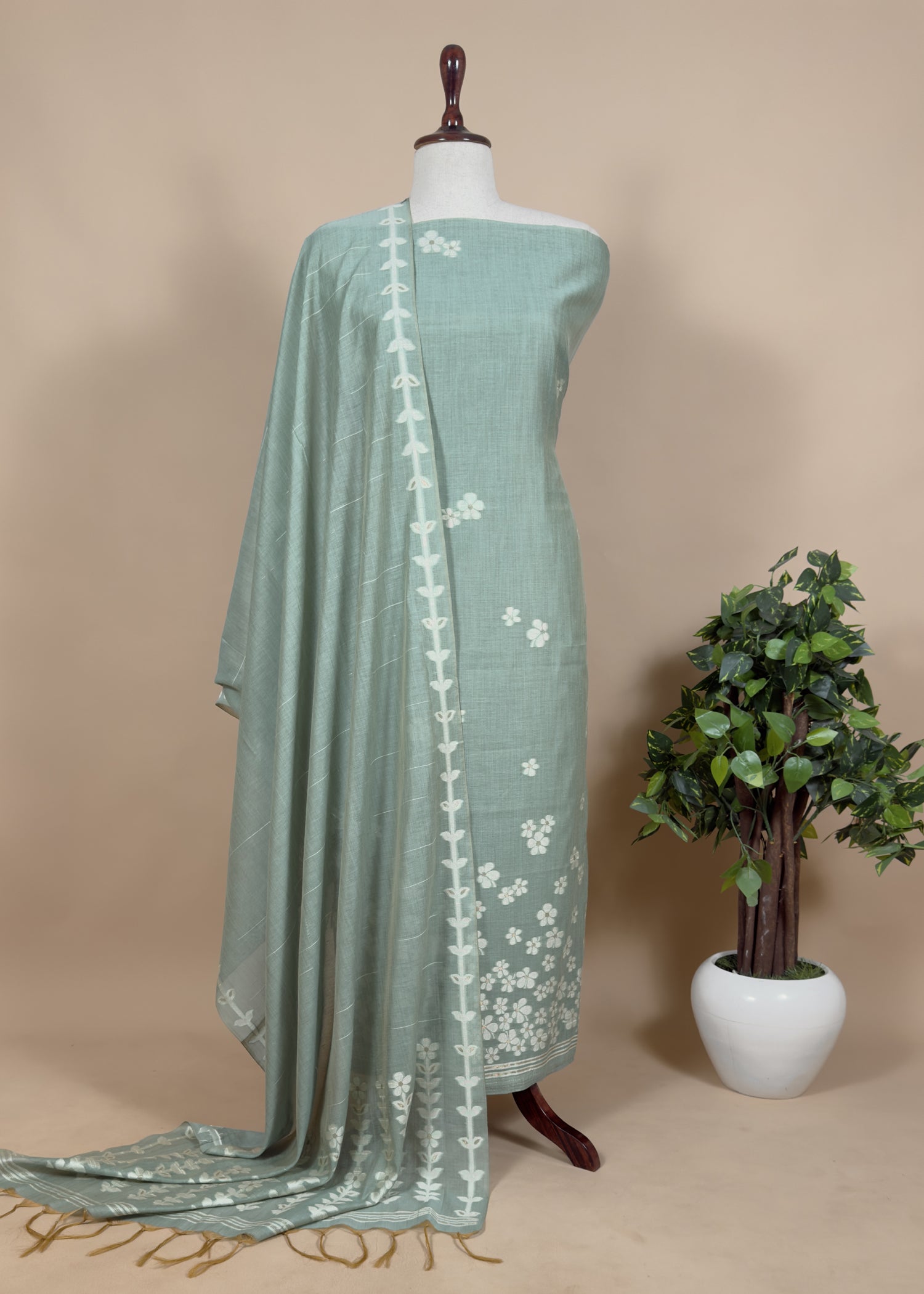 Yellow Jamdani Weaved Unstitched Suit In Chanderi